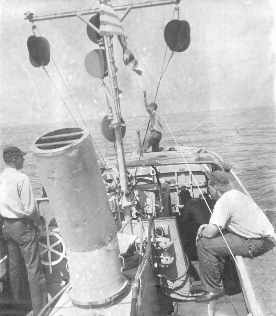 The photo below shows an MSL from Mine Division 33 during Operation Back Pack off Taiwan in February 1964. I was assigned as the second SN on MSL-14 and took this picture with my Brownie Hawkeye from the Stern Deck of MSL-14. My first mine exercise, I was being taught by Stroud SN who is on the bow communicating via semaphore with other MSL’s in the formation. The Boat Captain on the port side coxswain platform is BM2 Birchfield, and the sailor sitting on the starboard gunwale is Nelson EM3 or EM2 the boat electrician. I believe the sailor crouching forward inside, is likely the fifth crew member, an Engineman.